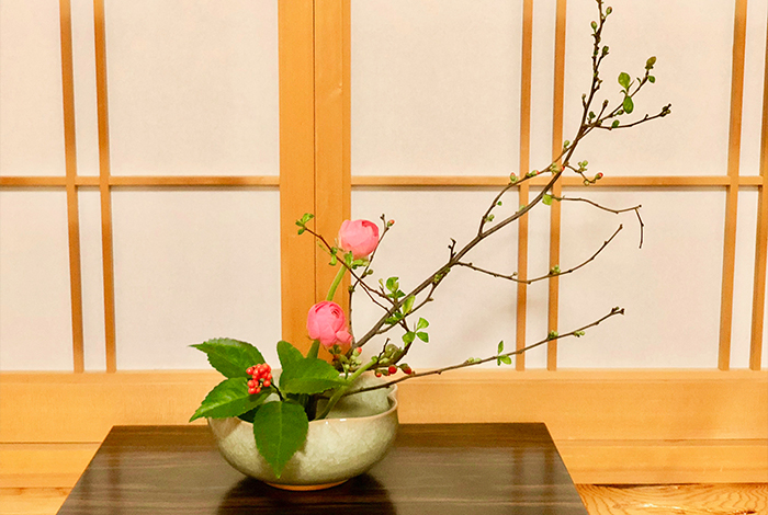 新年会、新春の宴会を彩るお部屋の生け花 | 綾部の料亭ゆう月